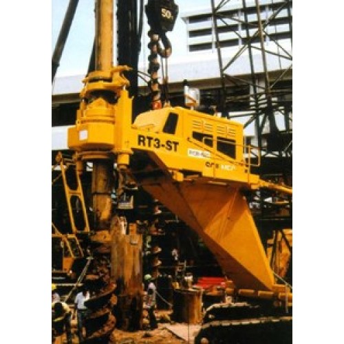 Máy khoan cọc nhồi gắn cẩu Italy Soilmec RT3-ST (động cơ diesel độc lập) Đường kính khoan tối đa: 2.5m Độ sâu khoan tối đa: 80m (tùy sức kéo cáp 1 của cẩu) Động cơ CUMMINS: 128 kW Mô men xoắn tối đa: 21 tấn mét Tốc độ khoan tối đa: 160 vòng/phút Lực